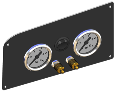 Innehåller: Kompressor, panel med manometrar, 2 x 10 m slang (svart och blå) samt monteringsdetaljer